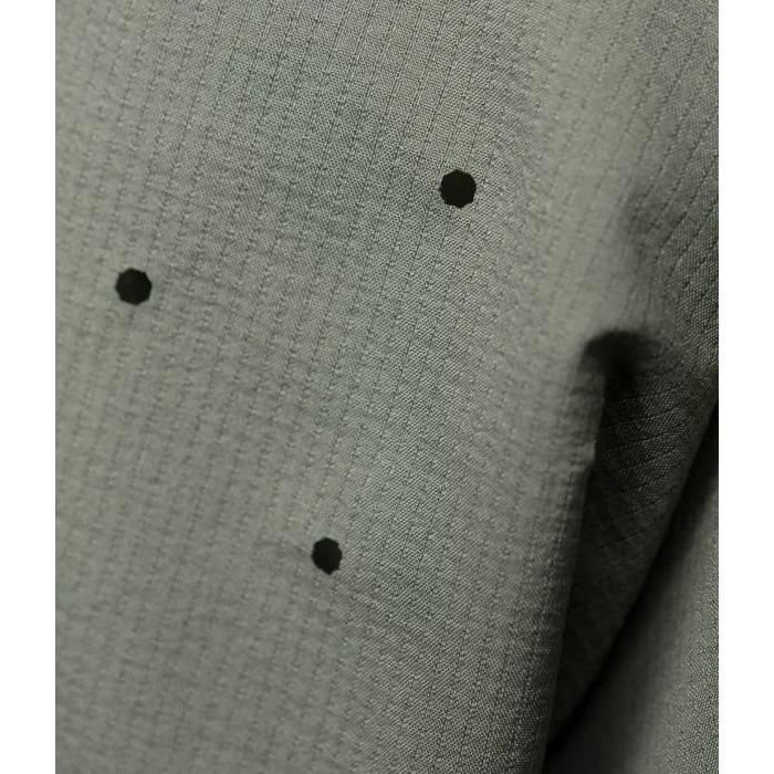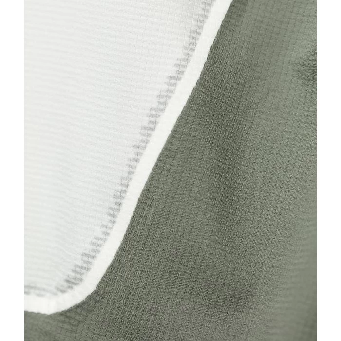 A super light weight, highly breathable technical fabric. It’s soft, water-repellent and wind-resistant, but with a slightly open weave to improve moisture vapor transportation during aerobic activities.