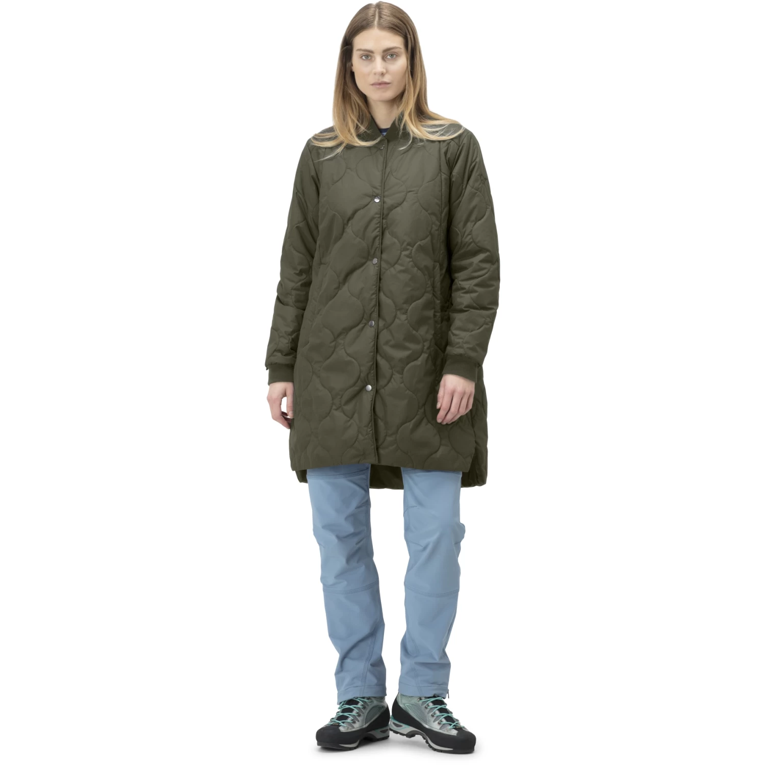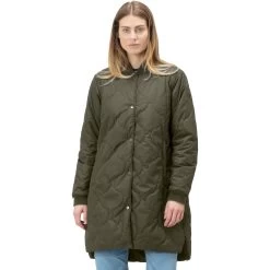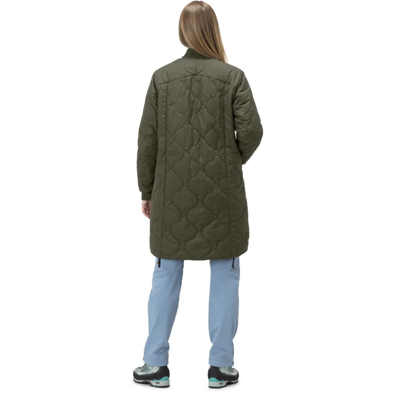 The coat has a regular fit with a below-knee length for extra coverage. The stretchy low-cut collar and stretch cuffs provide a  good fit and excellent comfort. It is quilted,  inspired by the iconic m65 quilted liner, which ensures stable and well-distributed insulation. The bottom hem has side slits for increased movability.
