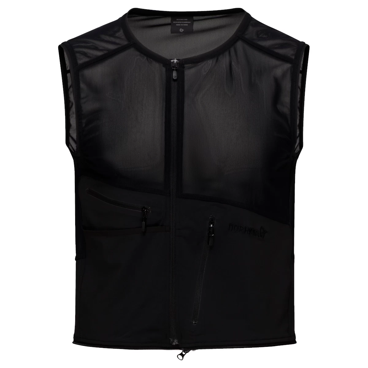 The ski/snowboard zip-in vest is a highly functional zip-in vest that will keep you pants in place and seal the snow out. The zip-in vest can easily be attached to Norrøna’s ski pants to offer comfortable, ultimate protection from snow. It distributes the load of the pants on a wider area for long-lasting comfort and has an athletic, slim fit. Made in comfortable 4-way stretch for great mobility and mesh in the back and side for optimal breathability. Features include a zippered napoleon chest pocket with zipping, an embroidered logo artwork, and a chest pocket with zipper closure.